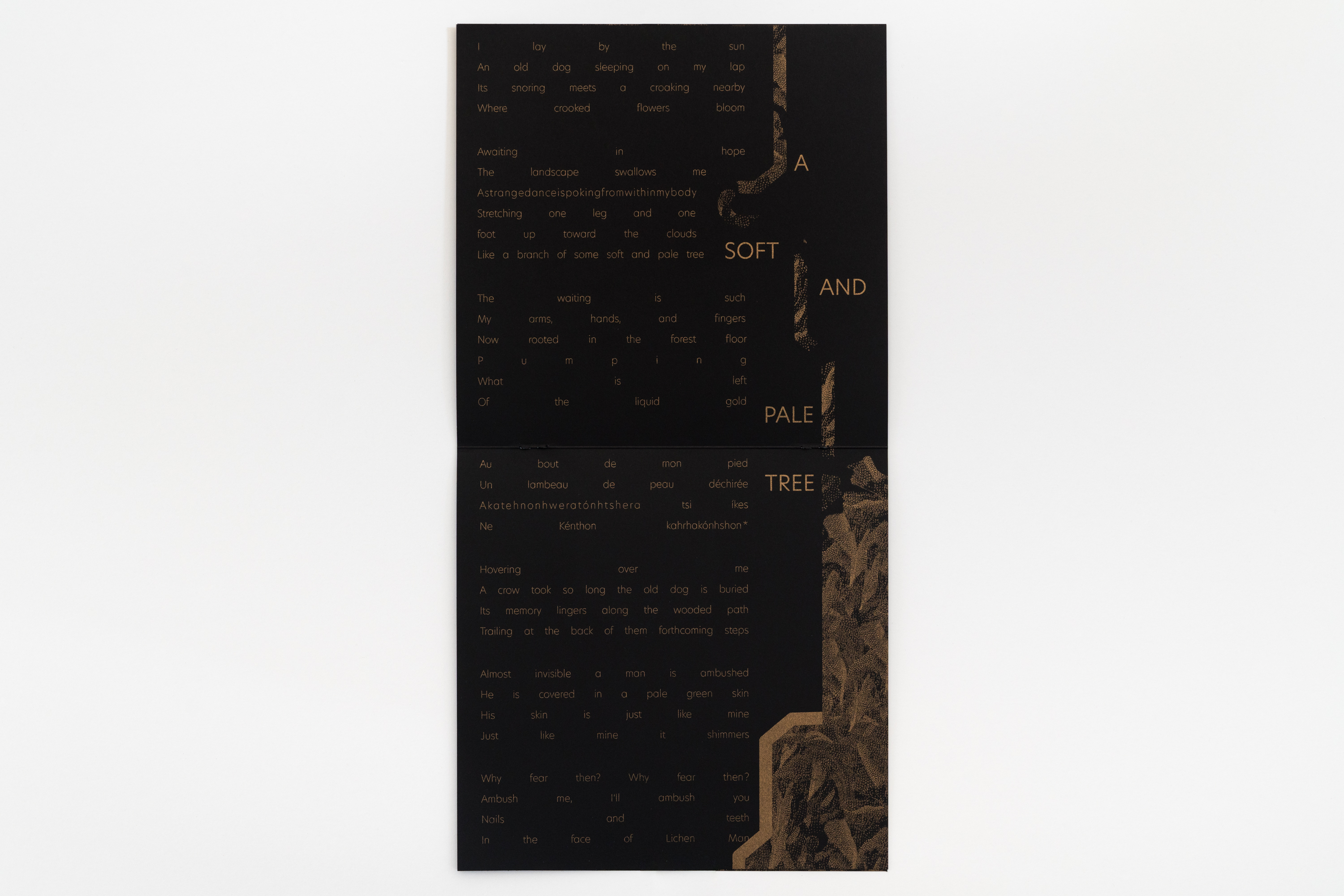 Emilie Roby’s TALOS interdisciplinary project is based on an electroacoustic composition and a booklet, recently published by Les éditions Le Laps (2023). Staging the conjunction between her musical (voice + electroacoustic), performance and writing practices, the work takes place simultaneously in the past, present and future, in a temporal remix from which emerge mainly the themes of memory and water. Whether in the form of bodily fluids, robotic hemorrhages or osmosis, the omnipresence of water invites the audience to experience a universe of vulnerability, urgency and scarcity. Elements, entities and memories invite themselves to this clumsy ballet, which takes place in territories as sonic as forested, mined and borrowed, which the protagonist crosses in plural languages.